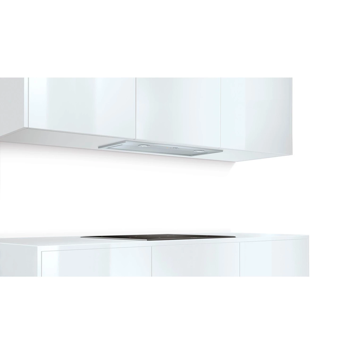Die Dunstabzugshaube DHL785C ist ein Lüfterbaustein, der sich zur Montage in einem Küchenschrank eignet und von der Kochstelle aufsteigenden Dunst schnell und restlos abführt. Ihr drei Leistungsstufen, die Beleuchtung und die Intensivstufe lassen sich elektronisch über Kurzhubtasten steuern. Nach sechs Minuten schaltet die DHL785C automatisch von der Intensivstufe auf Normalbetrieb zurück. Zur vereinfachten Reinigung ist der Metall-Fettfilter spülmaschinengeeignet.
