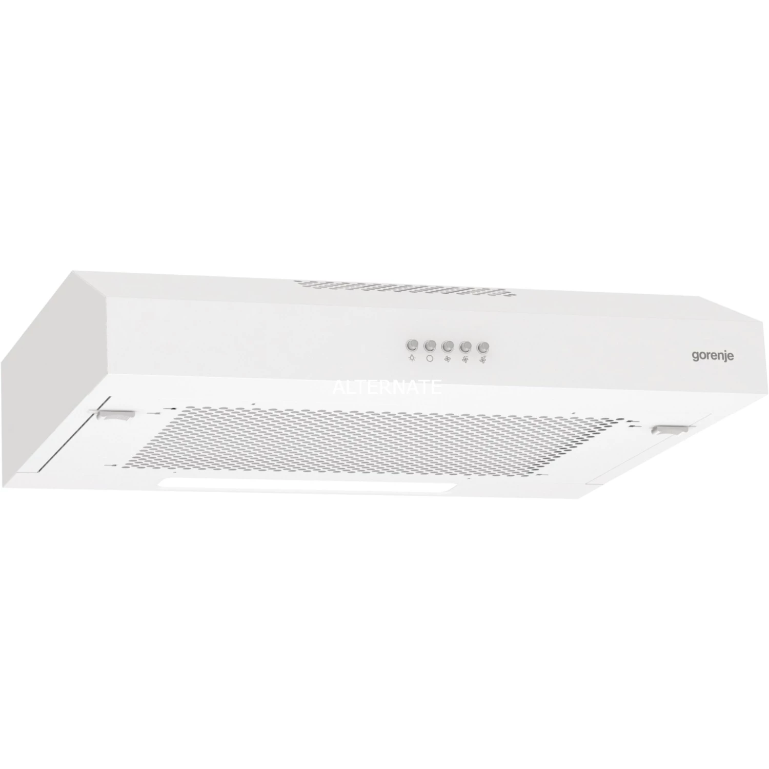 Die Dunstabzugshaube gorenje WHU629EW/S kann im Ab- oder Umluftbetrieb genutzt werden. Die 60 cm breite Unterbauhaube führt den aufsteigenden Dampf vom Kochfeld mit drei Leistungsstufen schnell und restlos ab. Mittels der mechanischen Steuerung lassen sich bei der WHU629EW/S alle Leistungsstufen sowie die Arbeitsplatzbeleuchtung mit einer LED-Lampe à 4 Watt komfortabel steuern. Sie besitzt zudem einen Acryl-Fettfilter, der waschbar ist und somit mehrfach verwendet werden kann.