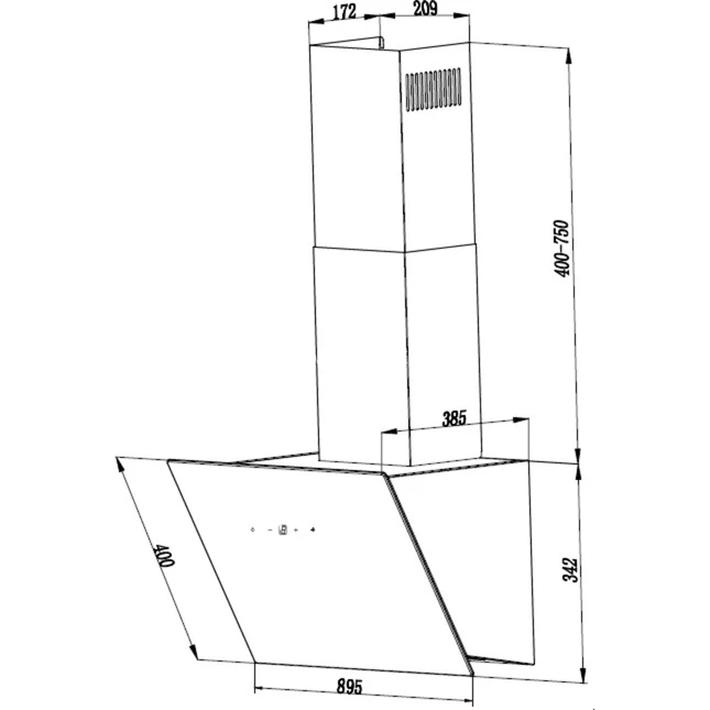 | Design | 90, cm, Wandhaube, kopffrei, mit, Glasschirm |
