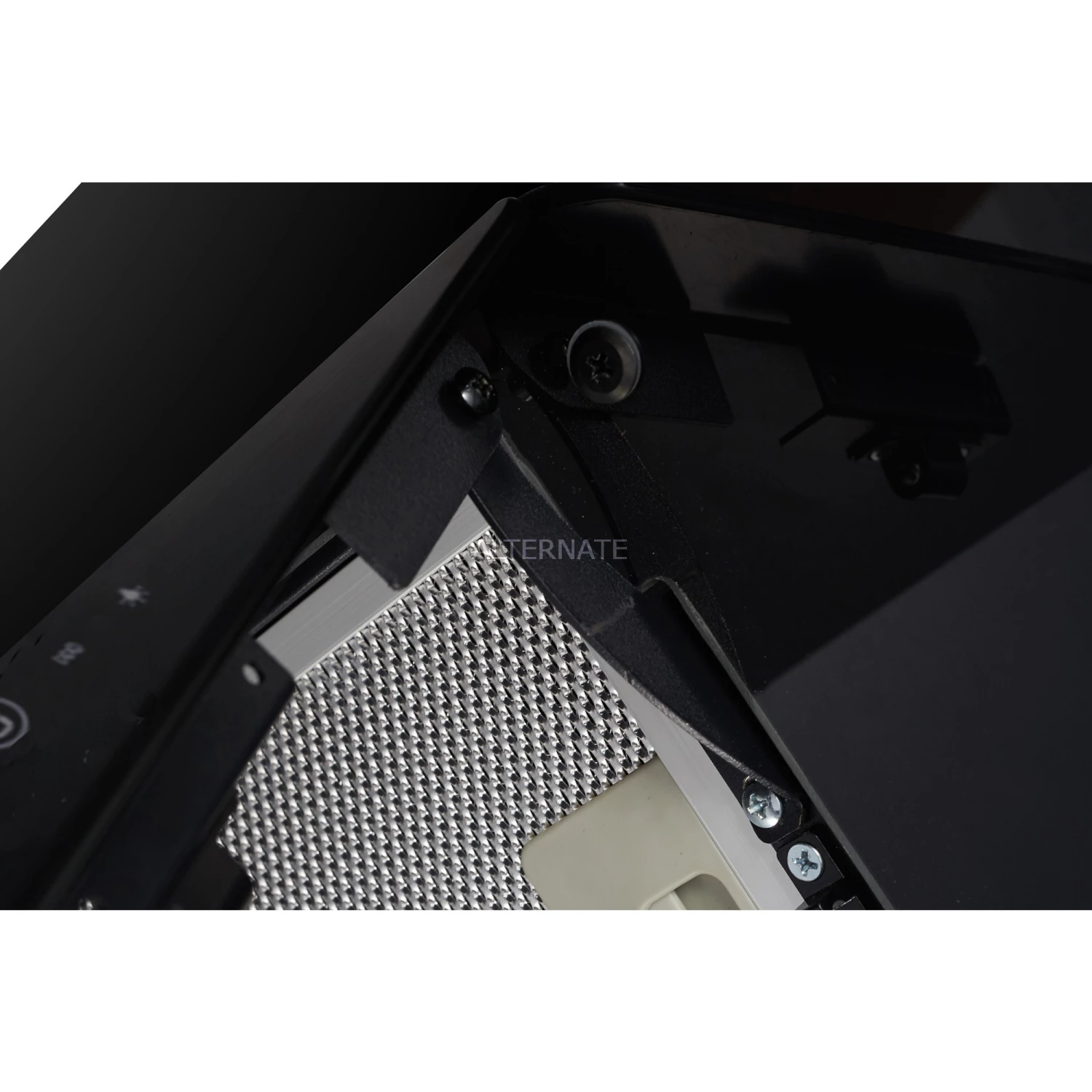 | Design | 60, cm, kopffreie, Schräghaube, Metallgehäuse, und, Glasschirm, mit, Edelstahlapplikation |