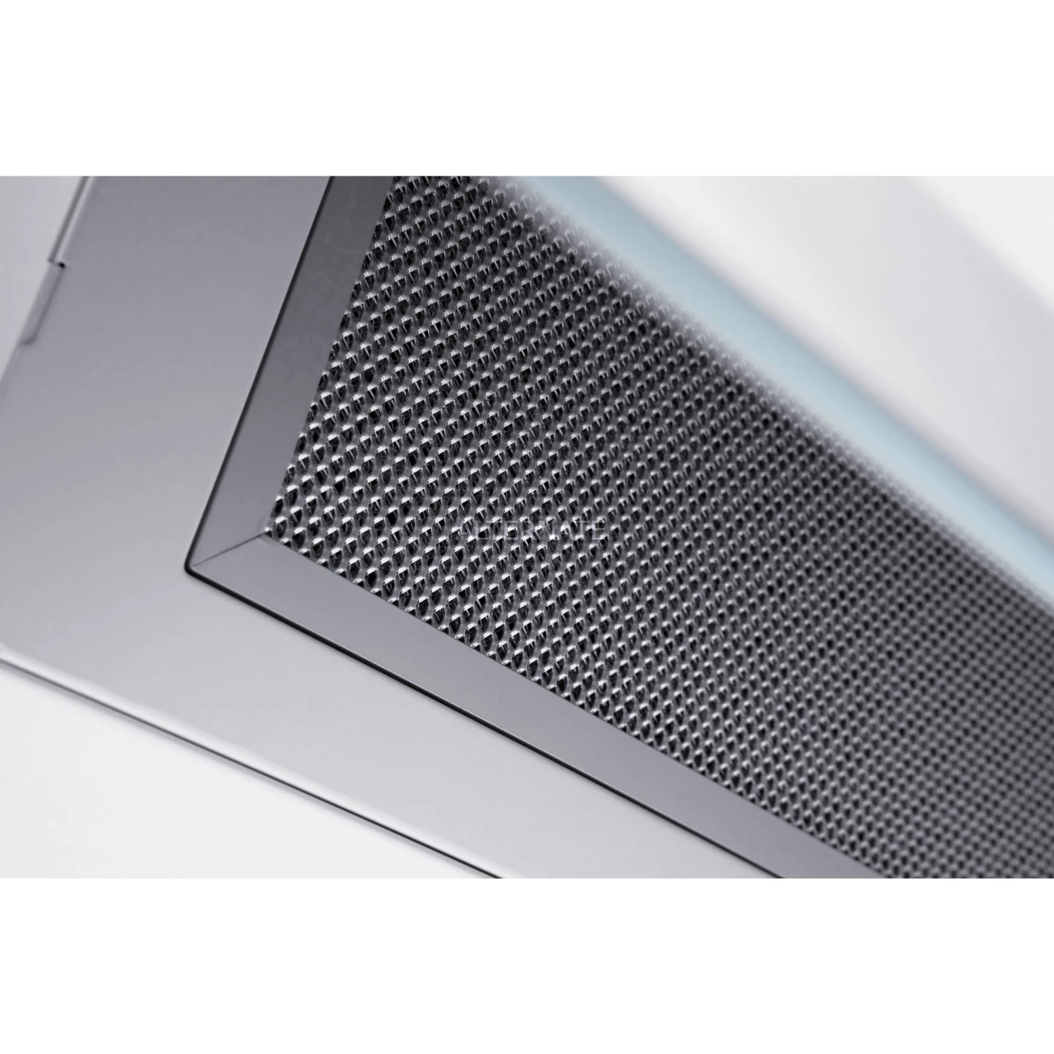 | Design | 90, cm, kopffreie, Schräghaube, Metallgehäuse, und, Glasschirm, mit, Edelstahlapplikation |