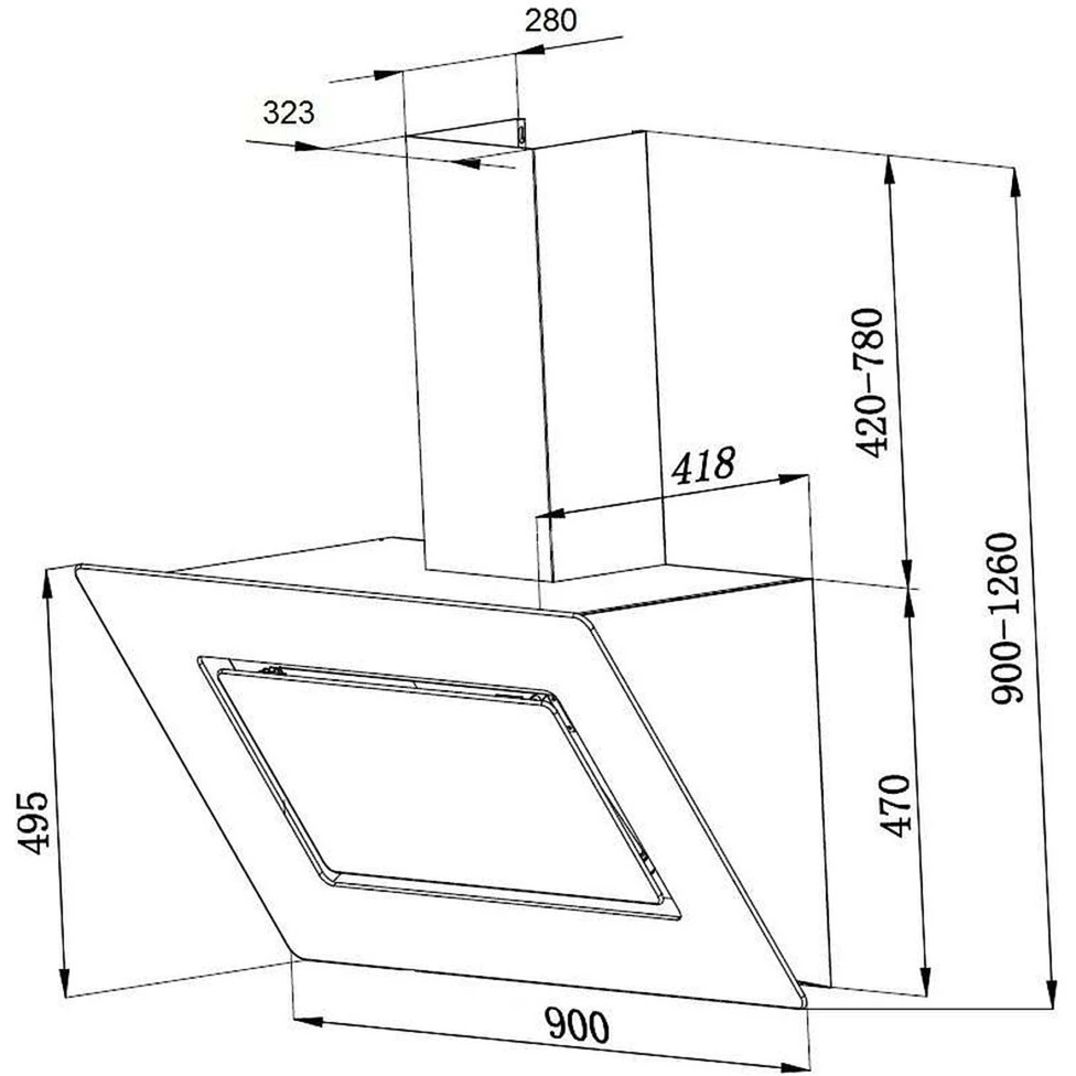 | Design | 90, cm, Schräghaube, kopffrei, mit, Glasschirm |