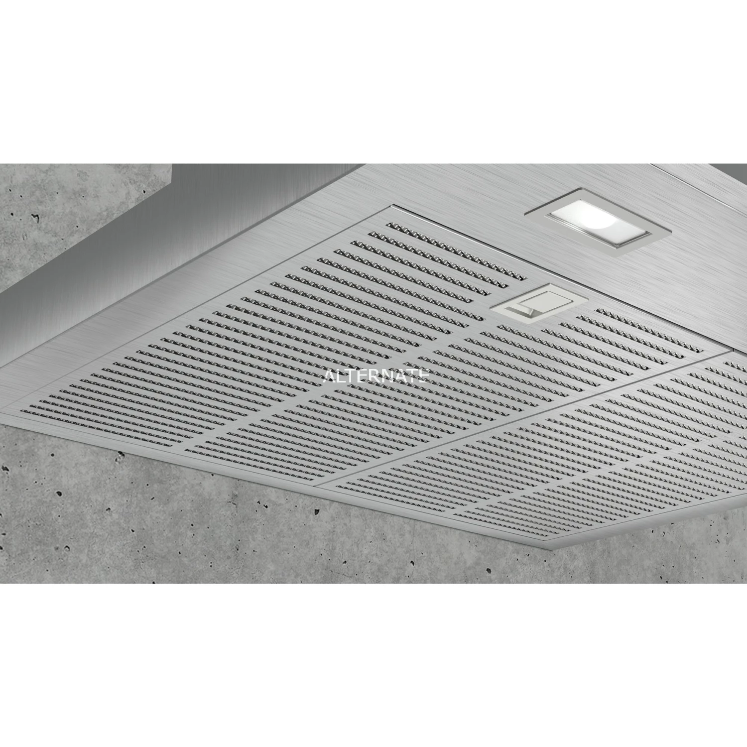 | Design | 60, cm, Wand-Esse, im, Box-Design;, Filterabdeckung, aus, Edelstahl, gelocht, und, spülmaschinengeeignet |