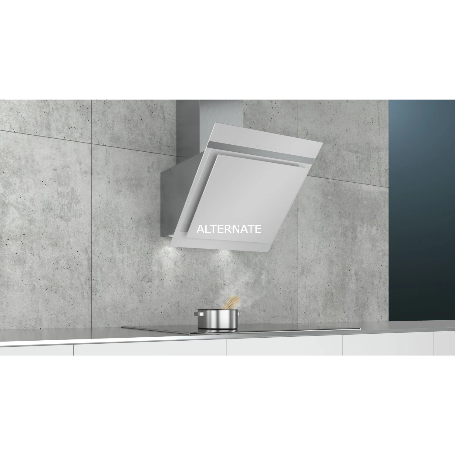 Die Dunstabzugshaube Siemens LC67KHM10 ist für die Wandmontage über Kochstellen geeignet und führt den aufsteigenden Dampf vom Kochfeld mit drei Leistungsstufen und einer Intensivstufe mit automatischer Rückstellung nach 6 Minuten schnell und restlos ab. Über die touchControl-Bedienung lassen sich bei der 60 cm breiten Schräg-Esse alle Leistungsstufen sowie die Arbeitsplatzbeleuchtung mit zwei LED-Lampe á 1,5 Watt durch direktes Antippen komfortabel steuern. Zudem ist die LC67KHM10 mit einem spülmaschinengeeigneten Metall-Fettfilter ausgestattet, der dank mehrfacher Verwendbarkeit die Umwelt schont. Darüber hinaus überzeugt die LC67KHM10 mit einem doppelflutigen Hochleistungsgebläse und einer Randabsaugung.