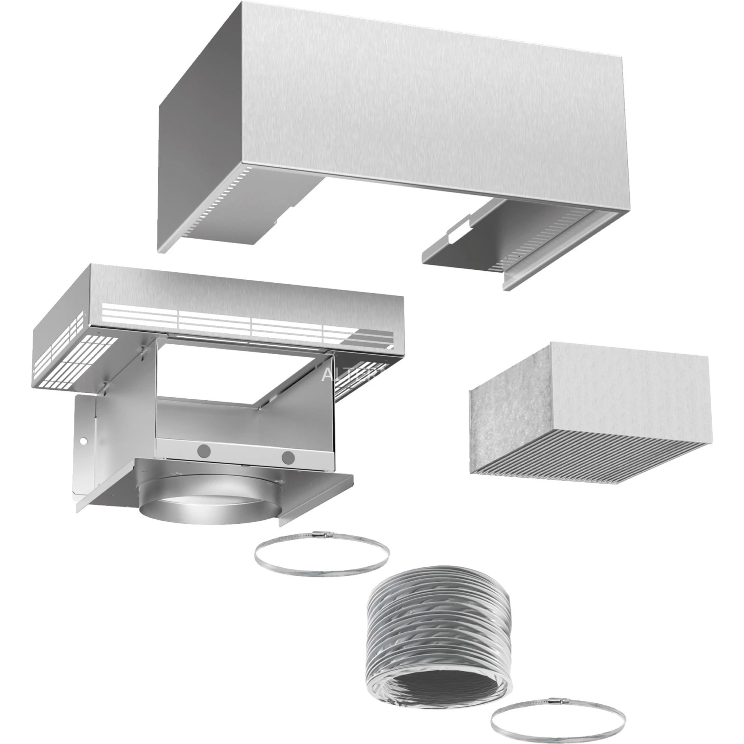 | Inhalt | Filtergehäuse, mit, Designblende, CleanAirPlus, Aktivkohlefilter, Flexschlauch, 2, Schlauchschellen, und, Befestigungsmaterial |