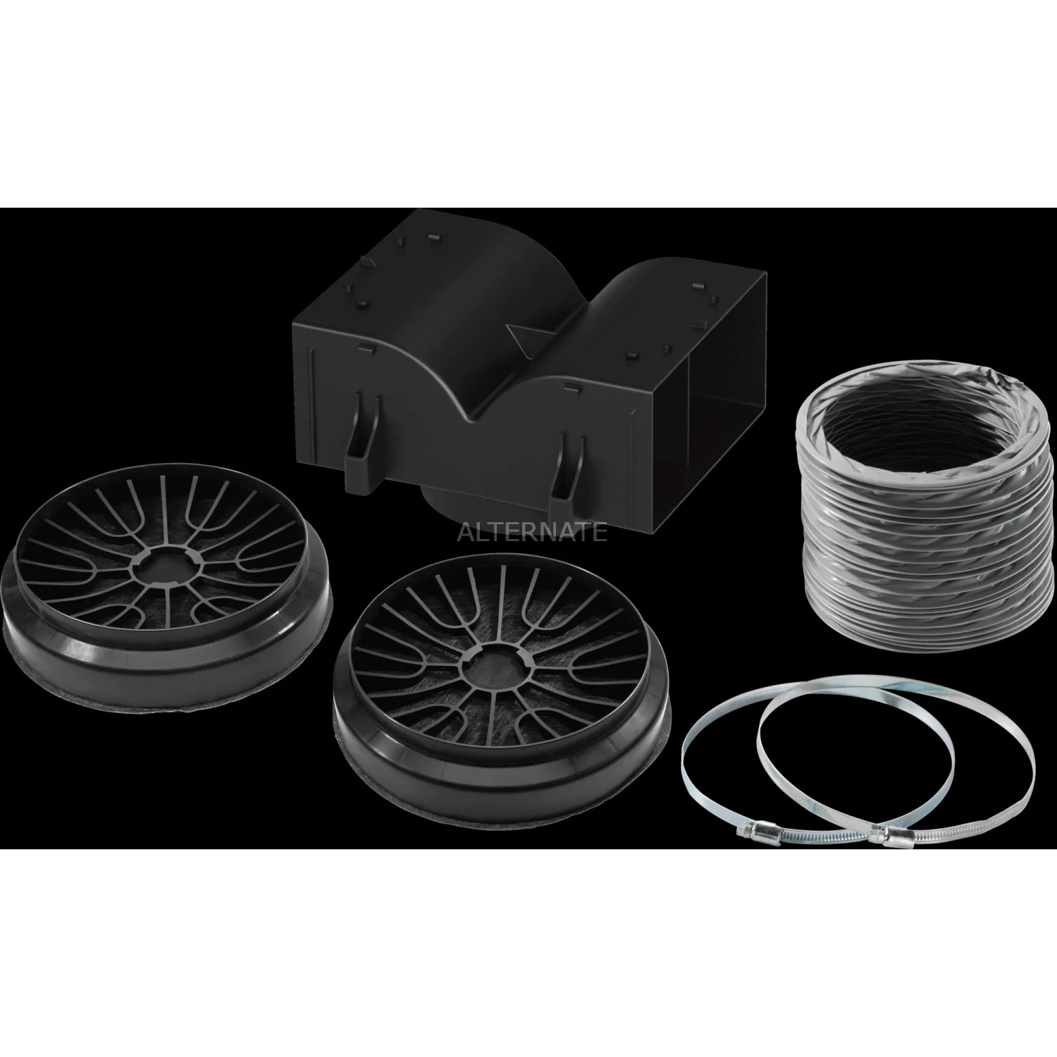 Das Neff Standard Umluftset Z51EIU1X1 eignet sich zum Umrüsten von Dunstabzugshauben auf Umluftbetrieb und besteht aus einer Umluftweiche, zwei Aktivkohlefiltern, einem flexiblen Schlauch sowie Befestigungsmaterial.