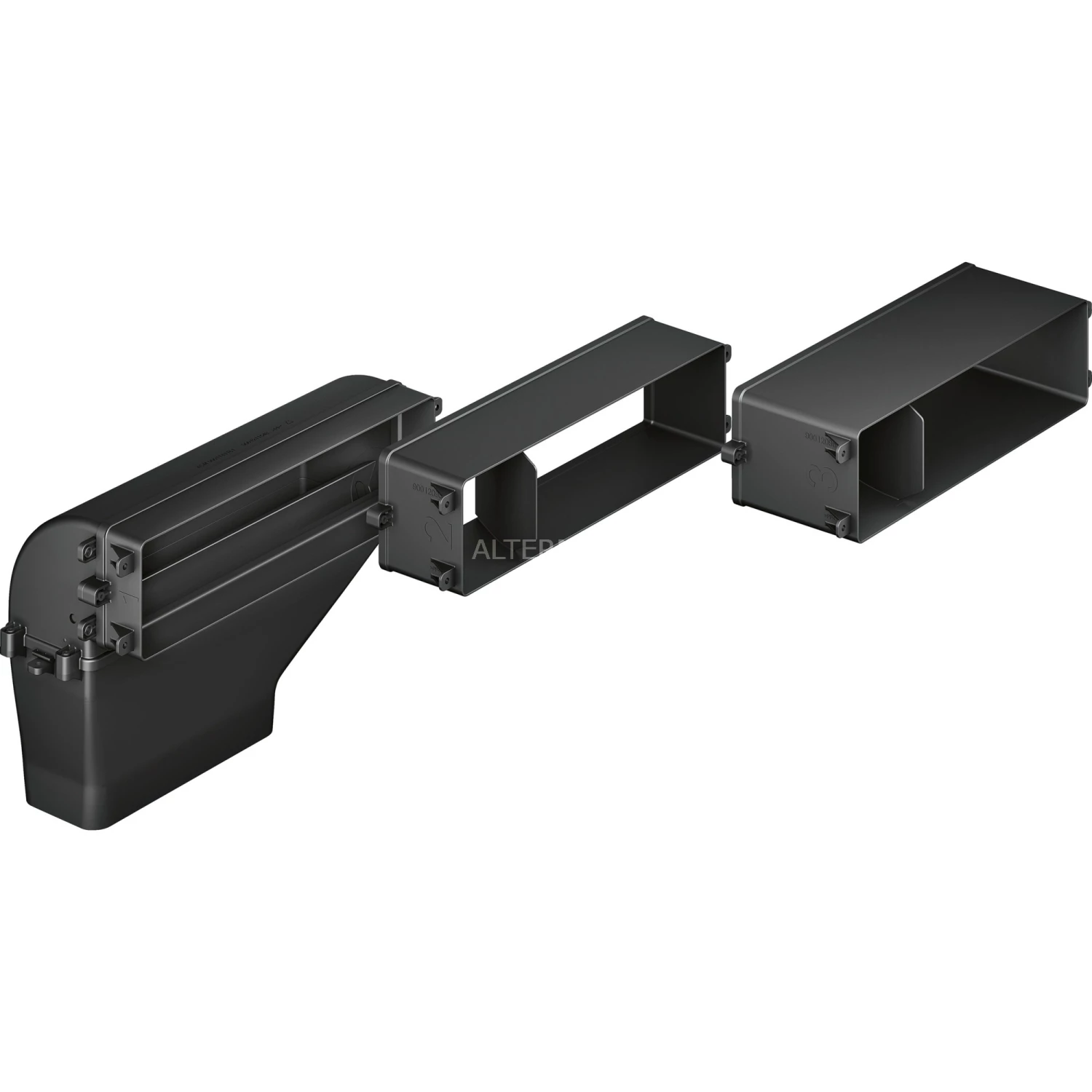 | Inhalt | 3, zusammensteckbare, Tiefenadapter, (40, mm, 80, mm, 120, mm), für, Arbeitsplattentiefen, von, 600-750, mm, 90°, Umlenkstück, Verbindungsstück, für, weitergehende, Verrohrungen, mit, 220×90, mm, Flachkanäle |