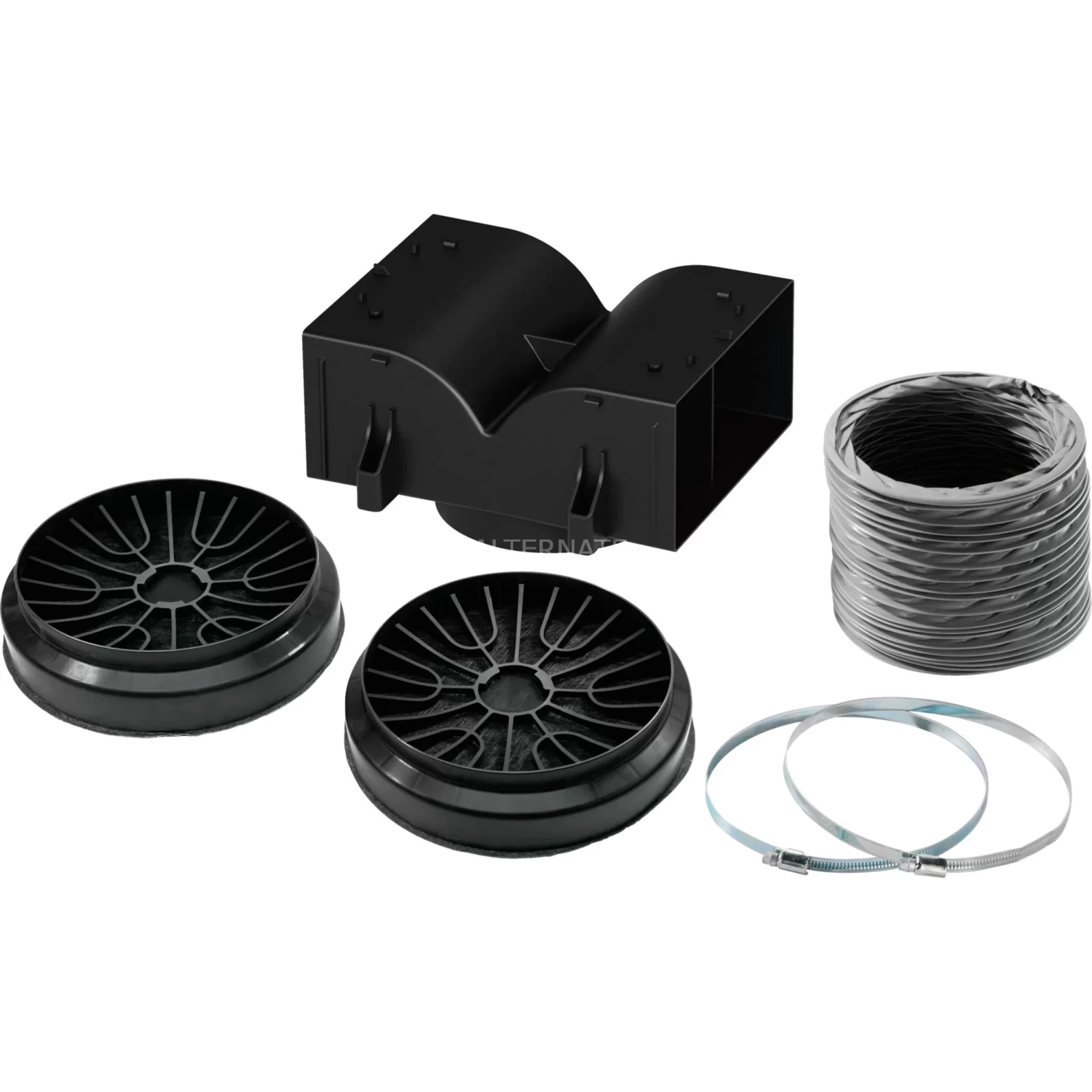 Das Siemens Standard Umluftset LZ11EKU11 eignet sich zum Umrüsten von Dunstabzugshauben auf Umluftbetrieb und besteht aus einer Umluftweiche, zwei Aktivkohlefiltern, einem flexiblen Schlauch und Befestigungsmaterial. Eine spezielle Imprägnierung ist besonders wirksam gegen Fischgeruch.
