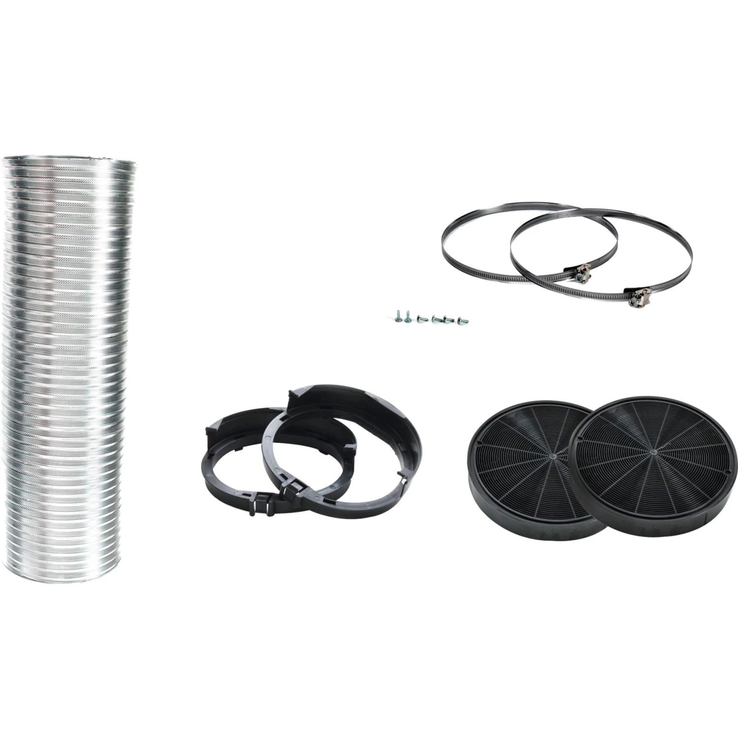 Das Siemens Starterset für Umluftbetrieb LZ55750 eignet sich zum Umrüsten von Dunstabzugshauben auf Umluftbetrieb. Das Set umfasst zwei Aktivfilter, eine Umlenkweiche, einen Flex-Schlauch mit 150 mm Durchmesser, 800 mm Länge und zwei Schlauchklemmen sowie Befestigungsmaterial.